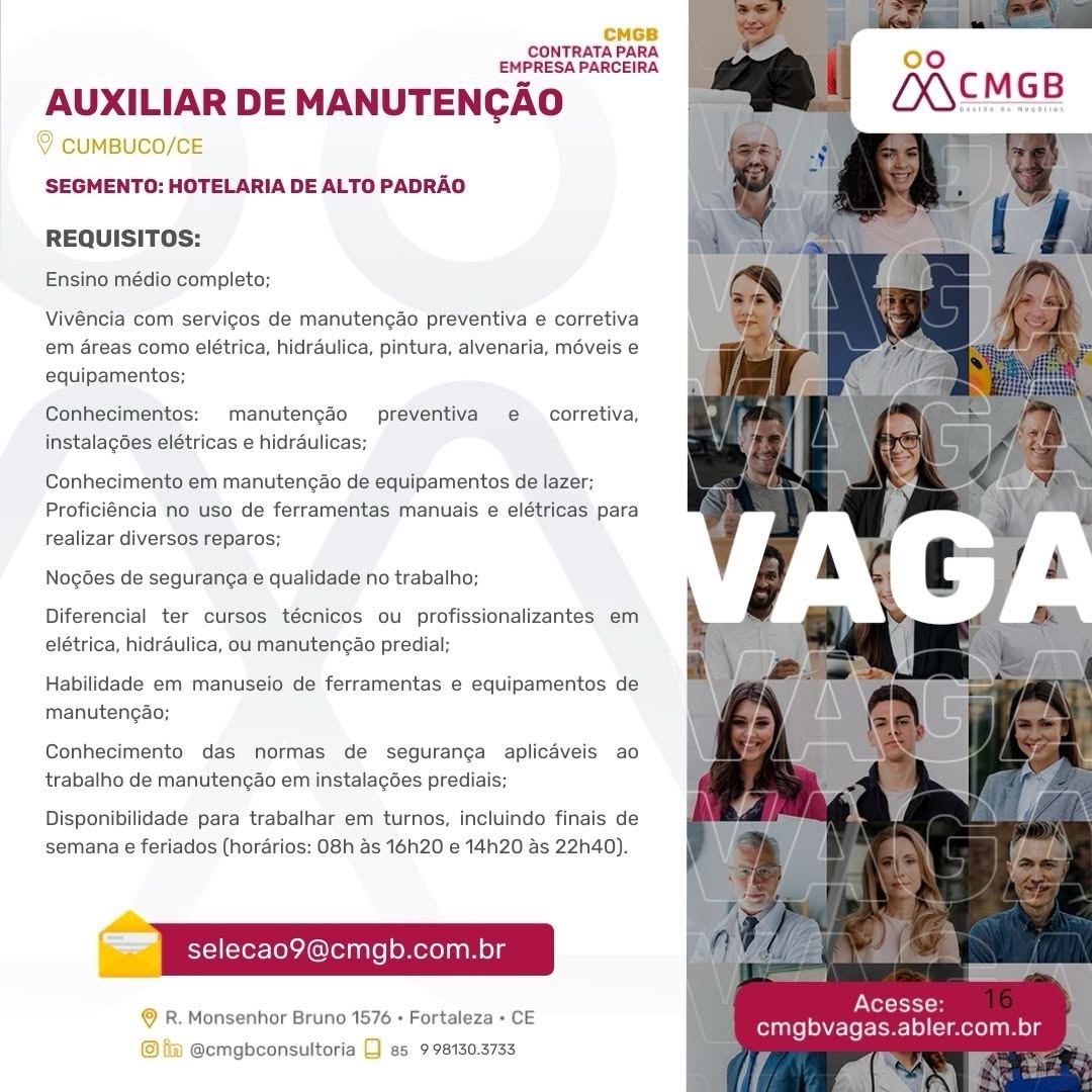 Motoqueiro, Auxiliar de Manutenção, Gestor de Marketing, Analista de TI, Analista Contábil, Supervisor(a) Comercial, Supervisor(a) de Vendas, Assistente Administrativo Financeiro, Assistente Comercial, Auxiliar de Manutenção, Executivo de Contas, Consultor(a) de Negócios