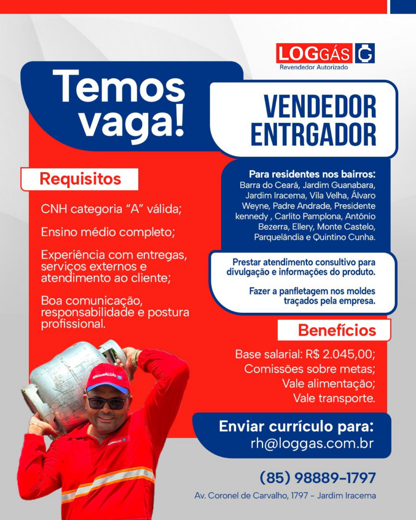 Não nos responsabilizamos pelas vagas, nem pelas informações fornecidas referente as mesmas, também não nos responsabilizamos pela idoneidade das empresas e instituições, apenas divulgamos as vagas que recebemos. Alertamos à buscar informações sobre as empresas que estão disponibilizando as vagas, através de contato por telefone ou e-mail divulgados nas mesmas, além de pesquisar na internet ou outros meios. Tome muito cuidado com locais (empresas ou instituições) que cobram taxas para garantir vagas ou para garantir uma colocação no mercado de trabalho. Esteja atento (a) a localização (endereço) da entrevista e do local de trabalho, se não conhecer ou achar que é um lugar isolado, vá com uma companhia ou não vá. Ter um emprego para garantir seu sustento e de sua família é importante, mas sua segurança e integridade também é, por isso, esteja atento. Se você é menor de idade vá acompanhado (a) de um (a) responsável.