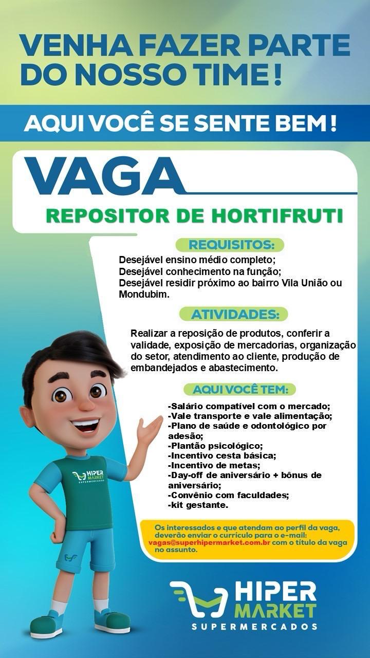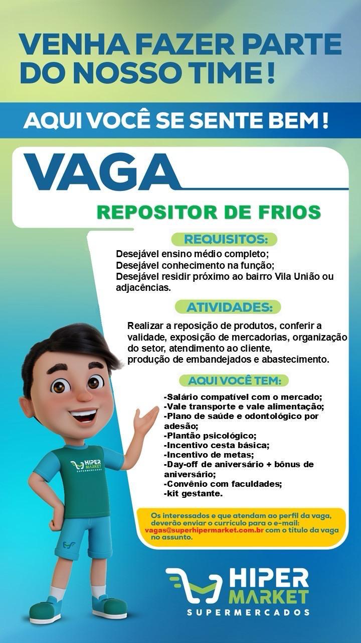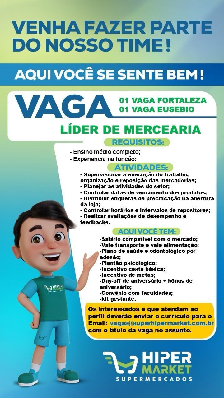 Motoqueiro, Fiscal de Caixa, Líder de Hortifruti, Repositor de Frios, Repositor de Hortifruti, PCD, Líder de Mercearia, Comprador de Perecíveis