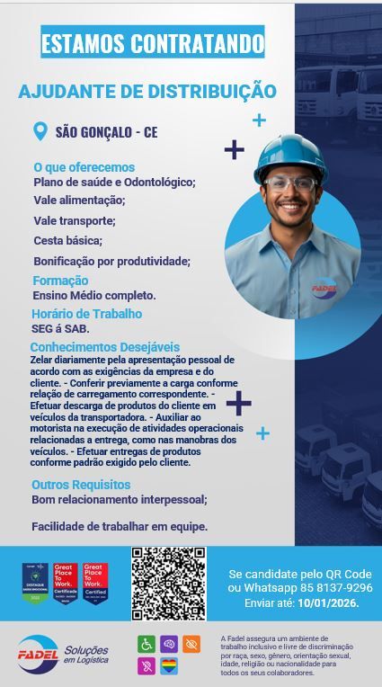 Motorista | Ajudante de Distribuição,