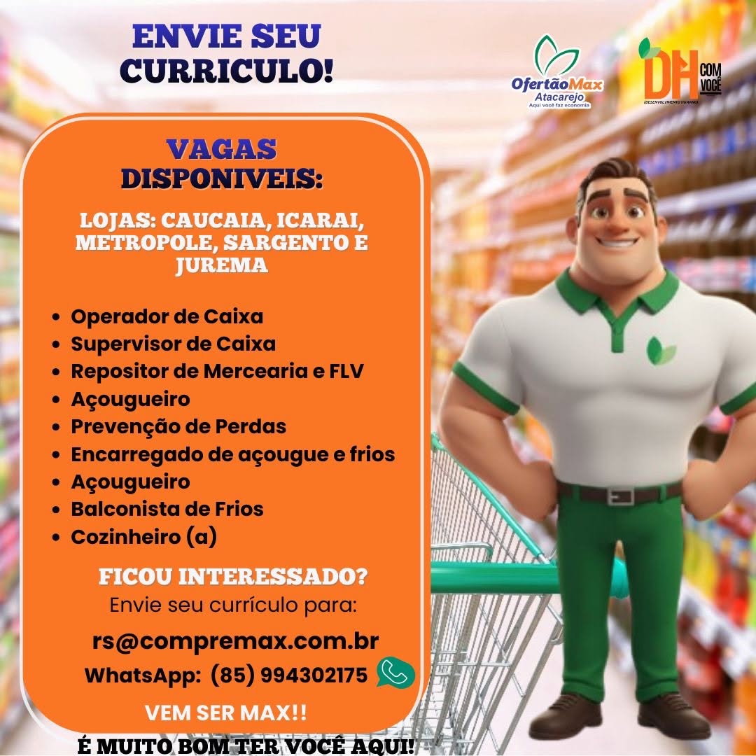 Operador de Caixa, Supervisor de Caixa, Repositor, Açougueiro, Prevenção de Perdas, Encarregado, Balconista, Cozinheiro(a)