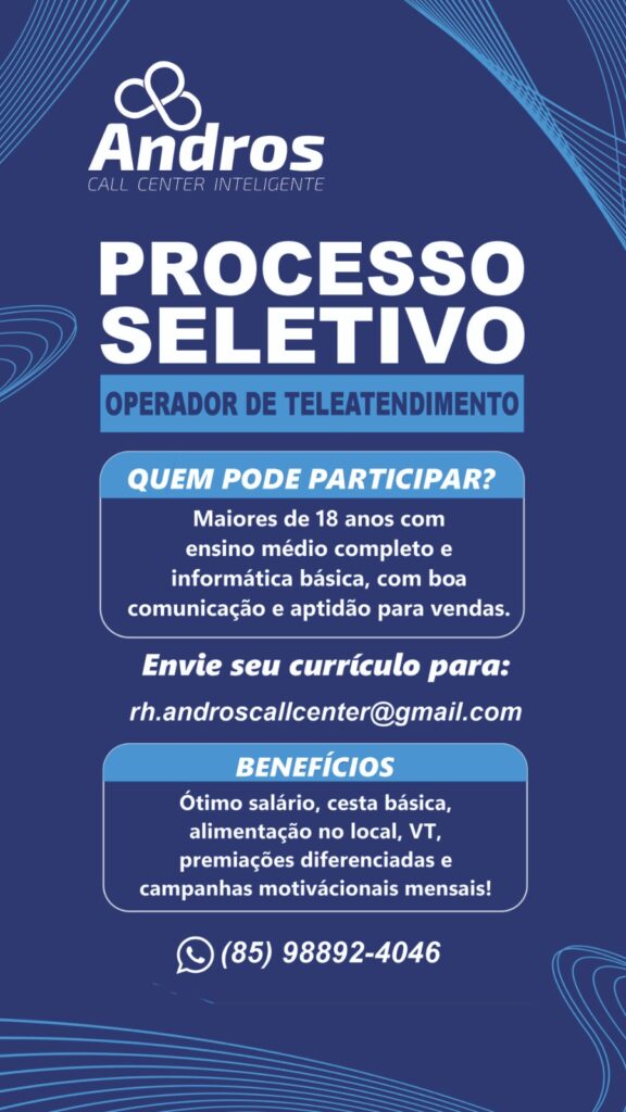 As vagas são divulgadas da mesma forma que recebemos. Não nos responsabilizamos pelas vagas, nem pelas informações fornecidas referente as mesmas, também não nos responsabilizamos pela idoneidade das empresas e instituições, apenas divulgamos as vagas que recebemos. Alertamos à buscar informações sobre as empresas que estão disponibilizando as vagas, através de contato por telefone ou e-mail divulgados nas mesmas, além de pesquisar na internet ou outros meios. Tome muito cuidado com locais (empresas ou instituições) que cobram taxas para garantir vagas ou para garantir uma colocação no mercado de trabalho. Esteja atento (a) a localização (endereço) da entrevista e do local de trabalho, se não conhecer ou achar que é um lugar isolado, vá com uma companhia ou não vá. Ter um emprego para garantir seu sustento e de sua família é importante, mas sua segurança e integridade também é, por isso, esteja atento. Se você é menor de idade vá acompanhado (a) de um (a) responsável.