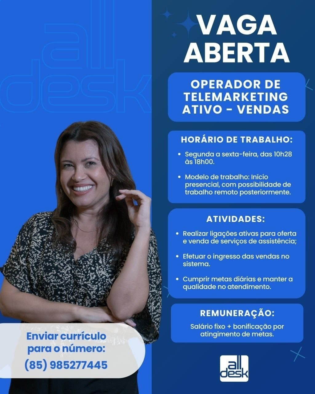 Nós não somos agência de empregos, não cobramos nada, nem antes e nem depois de você conseguir o seu emprego. Não somos nós que realizamos a seleção de currículos, também não realizamos entrevistas. Não nos responsabilizamos pelo envio de currículos. O envio de currículo deverá ser realizado pela pessoa interessada no e-mail que estiver na vaga.