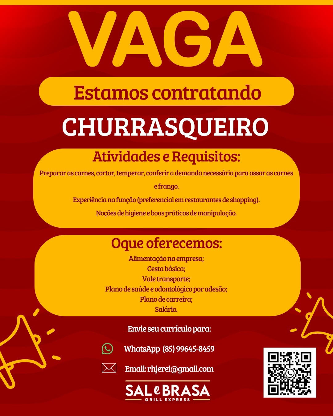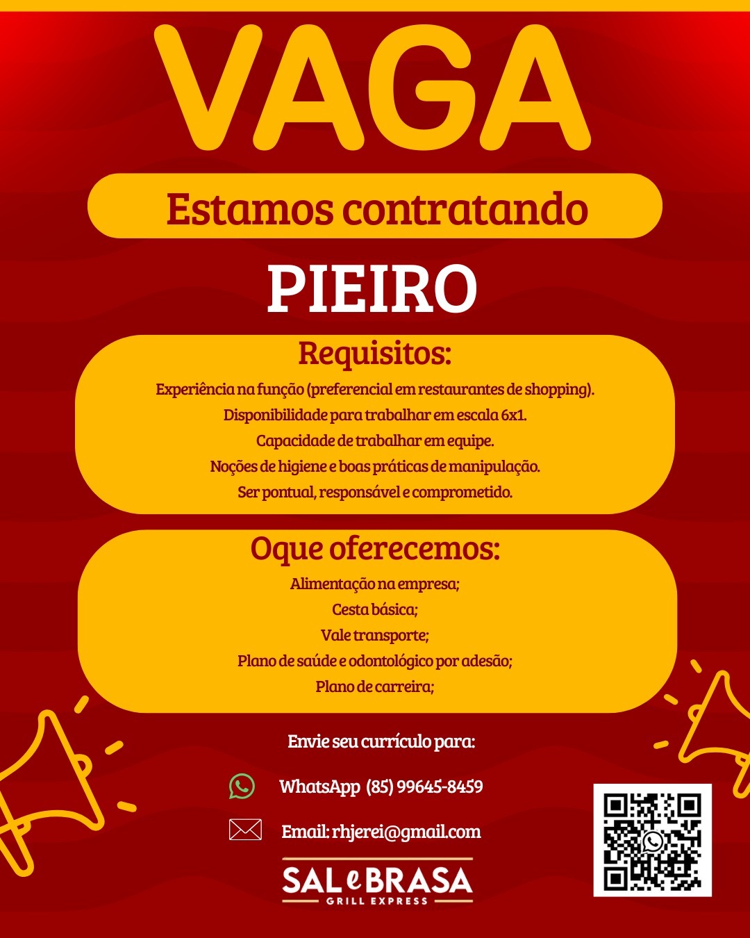 Pieiro, Atendente, Operador de Caixa, Auxiliar de Cozinha, Churrasqueiro