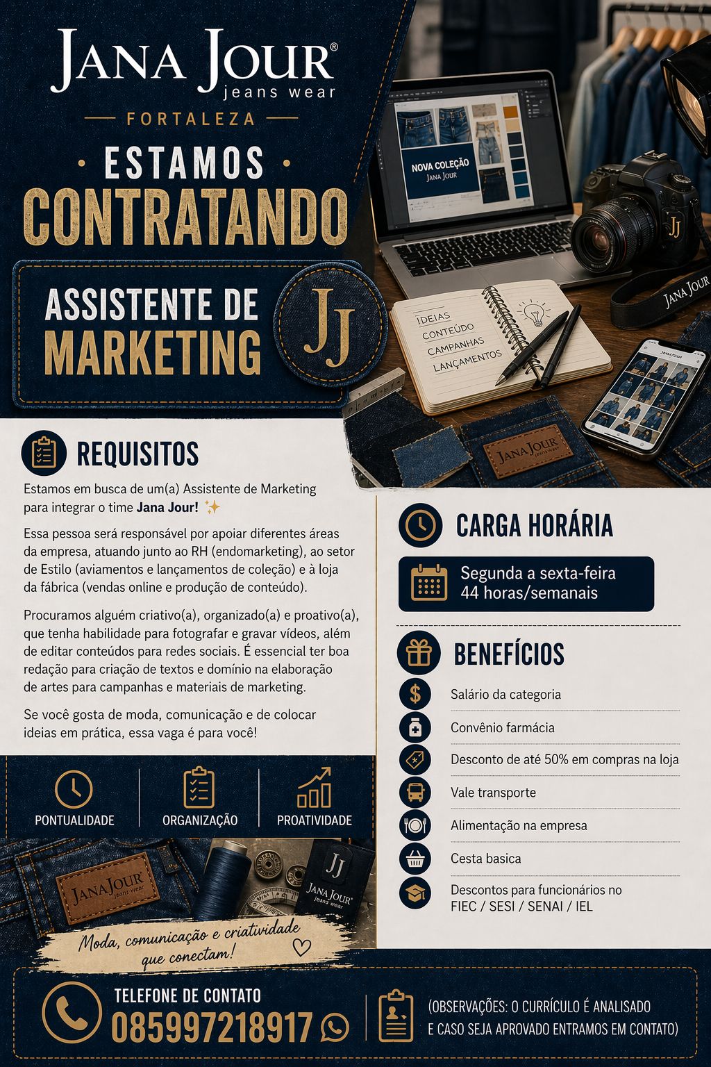 Pilotista, Inspetor(a) de Qualidade, Auxiliar de Almoxarifado, Assistente de Marketing