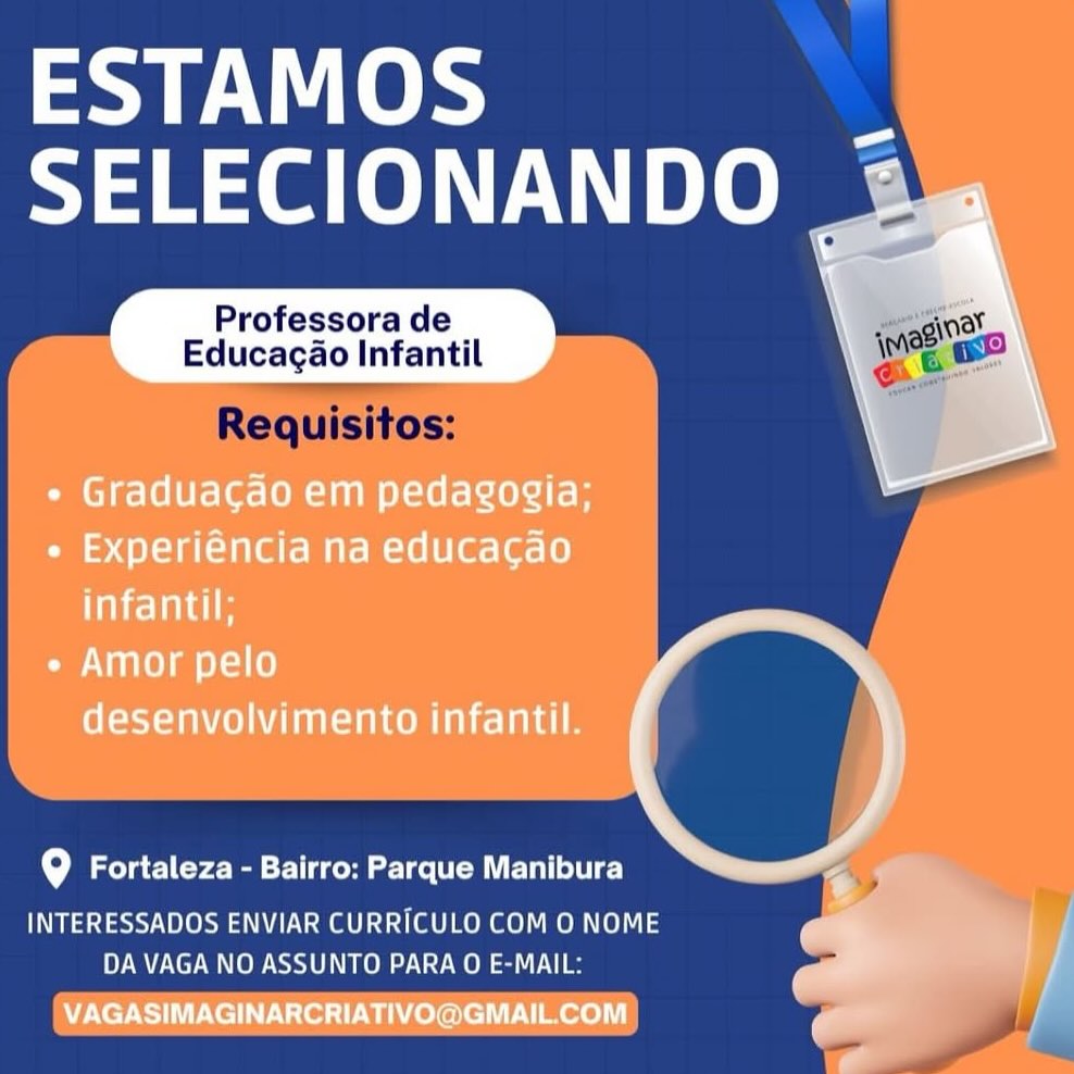 Nós não somos agência de empregos, não cobramos nada, nem antes e nem depois de você conseguir o seu emprego. Não somos nós que realizamos a seleção de currículos, também não realizamos entrevistas. Não nos responsabilizamos pelo envio de currículos. O envio de currículo deverá ser realizado pela pessoa interessada no e-mail que estiver na vaga.