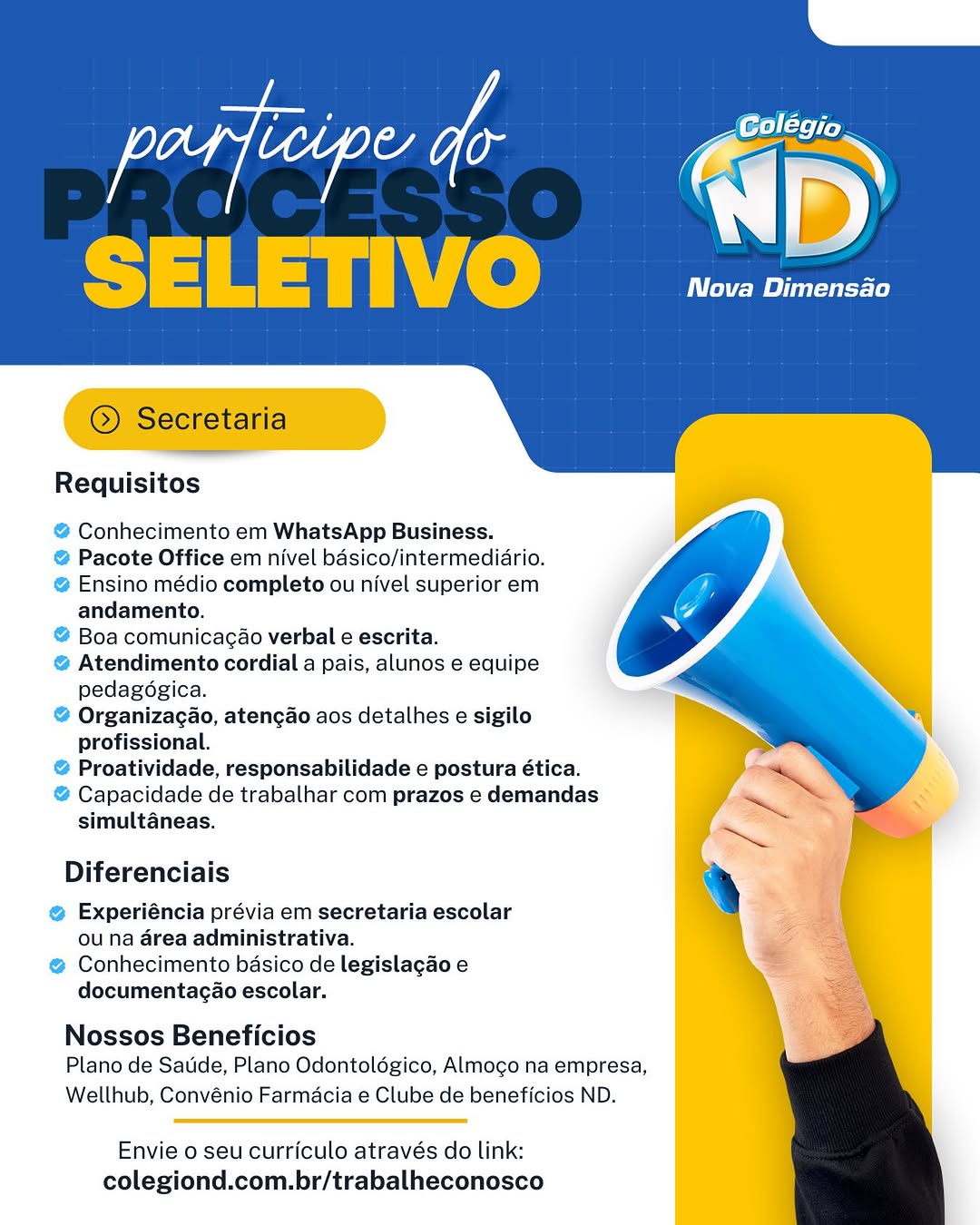 Não nos responsabilizamos pelas vagas, nem pelas informações fornecidas referente as mesmas, também não nos responsabilizamos pela idoneidade das empresas e instituições, apenas divulgamos as vagas que recebemos. Alertamos à buscar informações sobre as empresas que estão disponibilizando as vagas, através de contato por telefone ou e-mail divulgados nas mesmas, além de pesquisar na internet ou outros meios. Tome muito cuidado com locais (empresas ou instituições) que cobram taxas para garantir vagas ou para garantir uma colocação no mercado de trabalho. Esteja atento (a) a localização (endereço) da entrevista e do local de trabalho, se não conhecer ou achar que é um lugar isolado, vá com uma companhia ou não vá. Ter um emprego para garantir seu sustento e de sua família é importante, mas sua segurança e integridade também é, por isso, esteja atento. Se você é menor de idade vá acompanhado (a) de um (a) responsável.