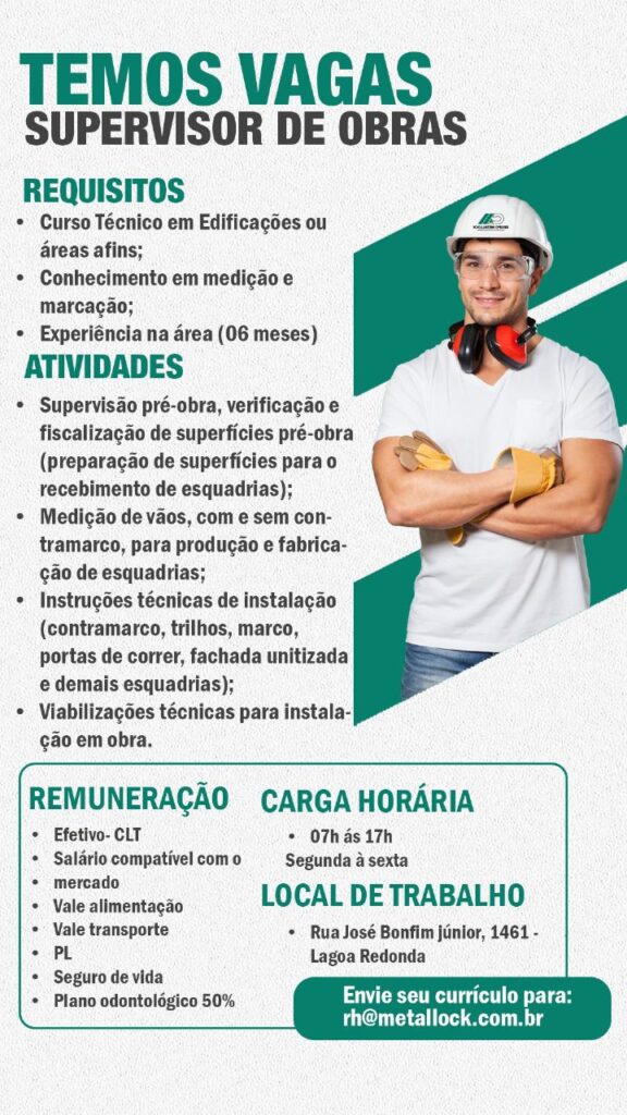 As vagas são divulgadas da mesma forma que recebemos. Não nos responsabilizamos pelas vagas, nem pelas informações fornecidas referente as mesmas, também não nos responsabilizamos pela idoneidade das empresas e instituições, apenas divulgamos as vagas que recebemos. Alertamos à buscar informações sobre as empresas que estão disponibilizando as vagas, através de contato por telefone ou e-mail divulgados nas mesmas, além de pesquisar na internet ou outros meios. Tome muito cuidado com locais (empresas ou instituições) que cobram taxas para garantir vagas ou para garantir uma colocação no mercado de trabalho. Esteja atento (a) a localização (endereço) da entrevista e do local de trabalho, se não conhecer ou achar que é um lugar isolado, vá com uma companhia ou não vá. Ter um emprego para garantir seu sustento e de sua família é importante, mas sua segurança e integridade também é, por isso, esteja atento. Se você é menor de idade vá acompanhado (a) de um (a) responsável.