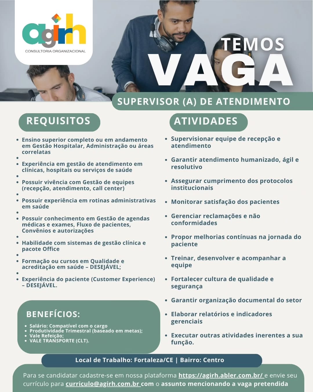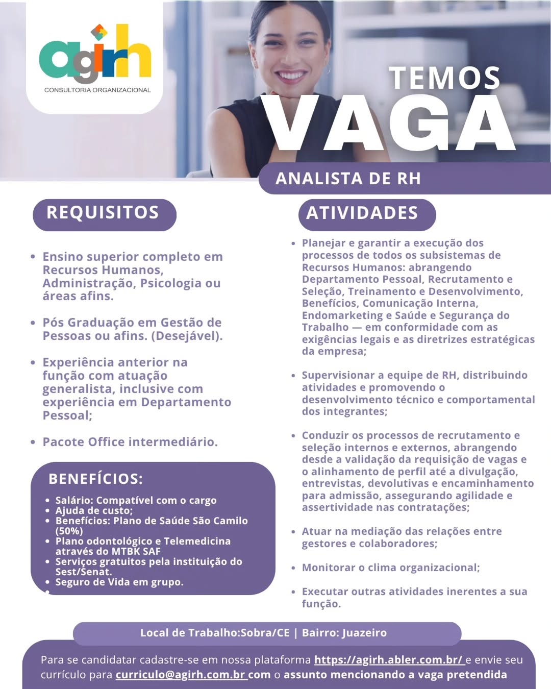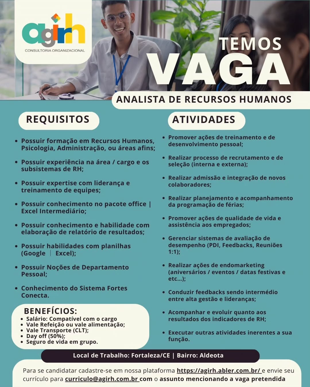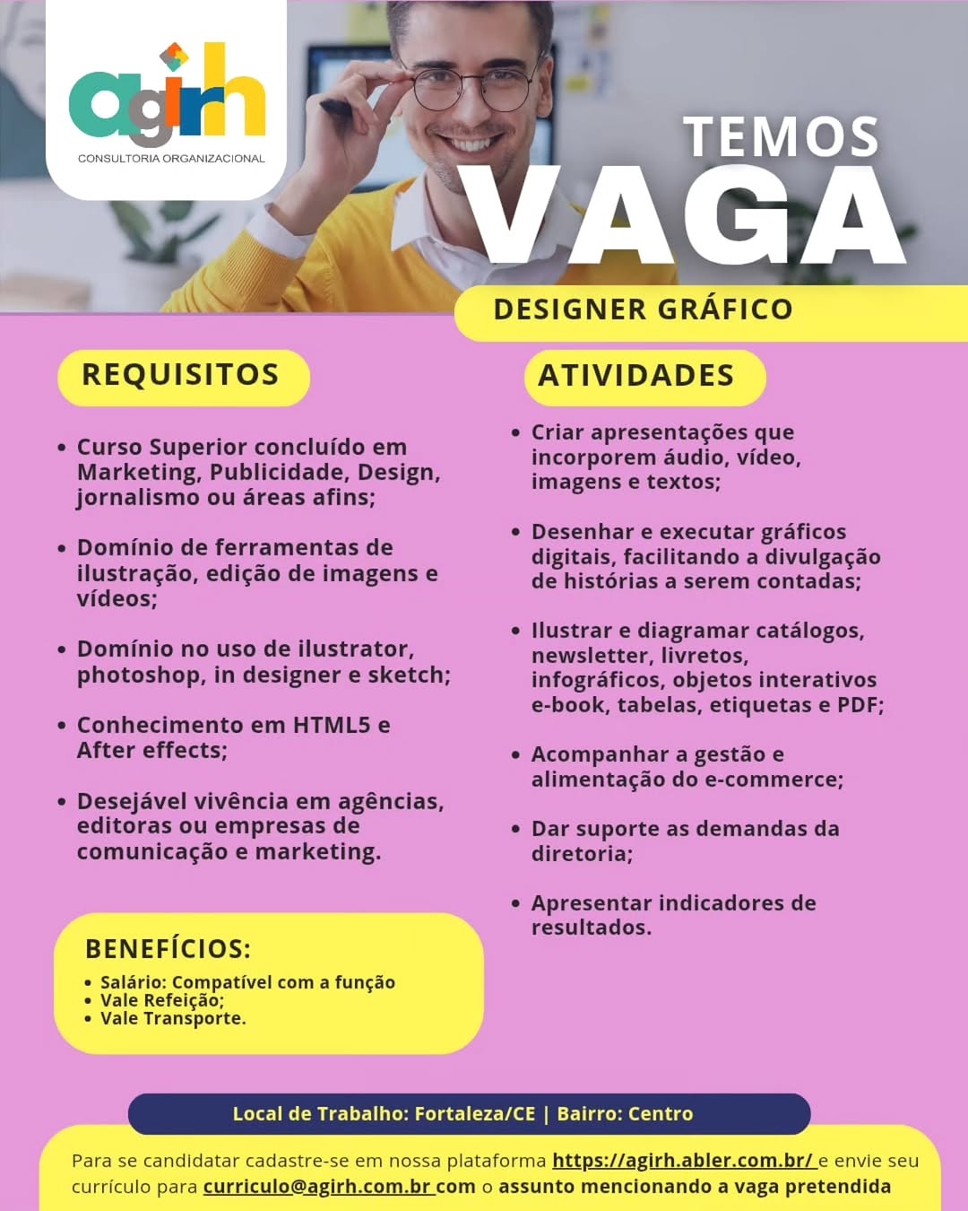 Nós não somos agência de empregos, não cobramos nada, nem antes e nem depois de você conseguir o seu emprego. Não somos nós que realizamos a seleção de currículos, também não realizamos entrevistas. Não nos responsabilizamos pelo envio de currículos. O envio de currículo deverá ser realizado pela pessoa interessada no e-mail que estiver na vaga.