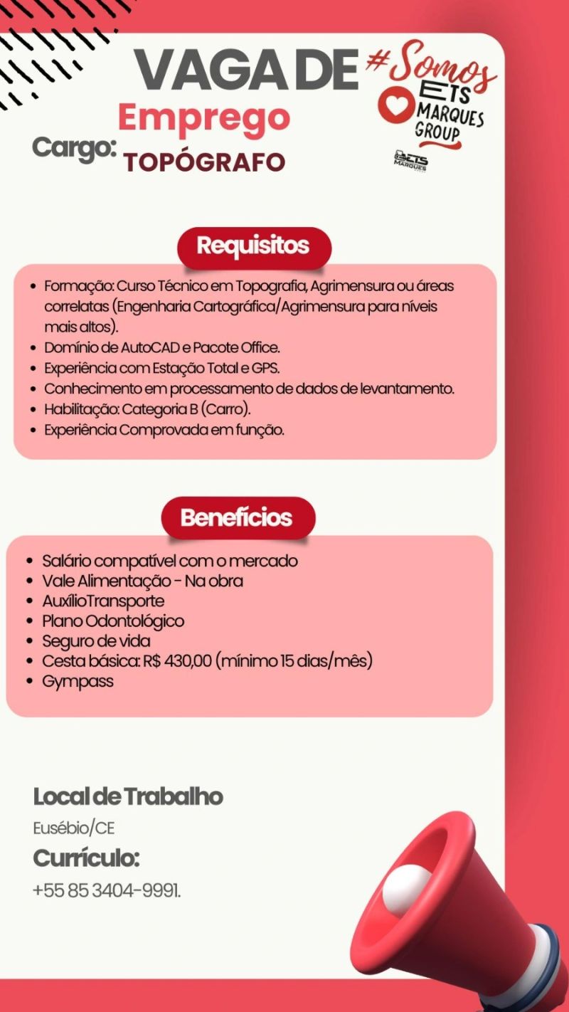As vagas são divulgadas da mesma forma que recebemos. Não nos responsabilizamos pelas vagas, nem pelas informações fornecidas referente as mesmas, também não nos responsabilizamos pela idoneidade das empresas e instituições, apenas divulgamos as vagas que recebemos. Alertamos à buscar informações sobre as empresas que estão disponibilizando as vagas, através de contato por telefone ou e-mail divulgados nas mesmas, além de pesquisar na internet ou outros meios. Tome muito cuidado com locais (empresas ou instituições) que cobram taxas para garantir vagas ou para garantir uma colocação no mercado de trabalho. Esteja atento (a) a localização (endereço) da entrevista e do local de trabalho, se não conhecer ou achar que é um lugar isolado, vá com uma companhia ou não vá. Ter um emprego para garantir seu sustento e de sua família é importante, mas sua segurança e integridade também é, por isso, esteja atento. Se você é menor de idade vá acompanhado (a) de um (a) responsável.