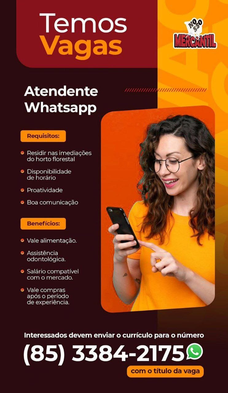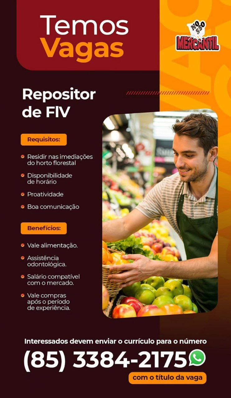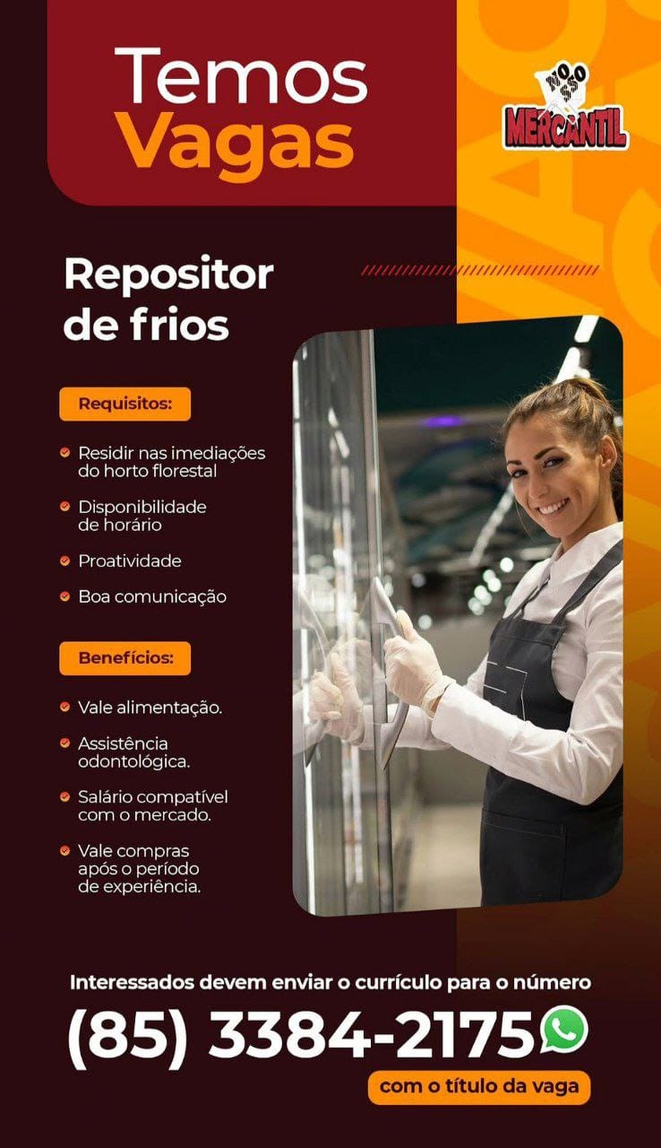 Vagas em Maracanaú para Embalador, Repositor de FLV, Repositor de Frios, Confeiteiro, Recepcionista, Padeiro, Operador de Caixa, Atendente de WhatsApp