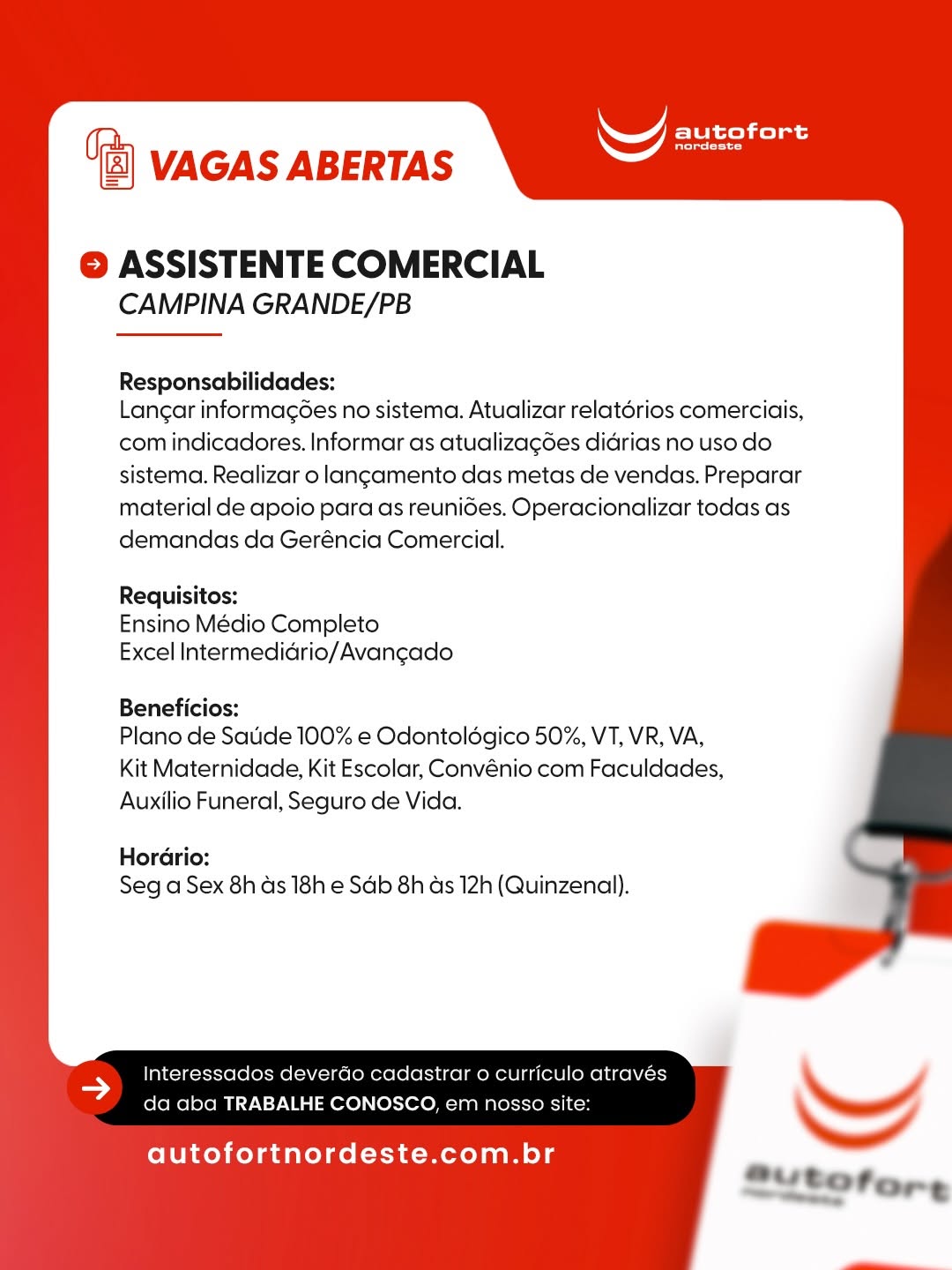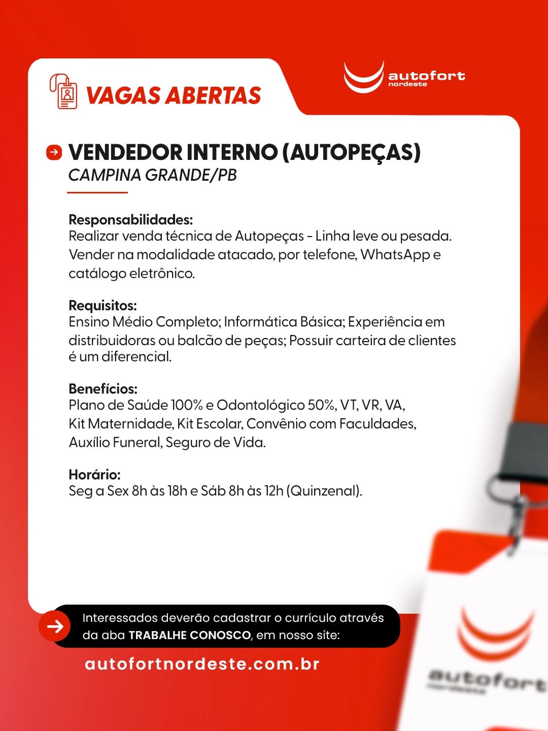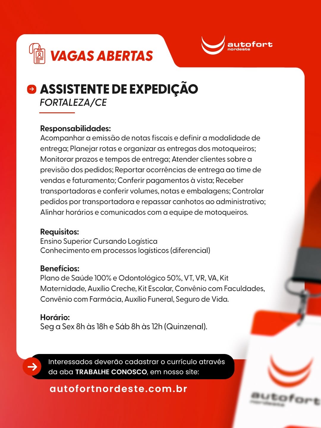 Vendedor Interno Autopeças, Assistente de Expedição, Auxiliar de Serviço Gerais