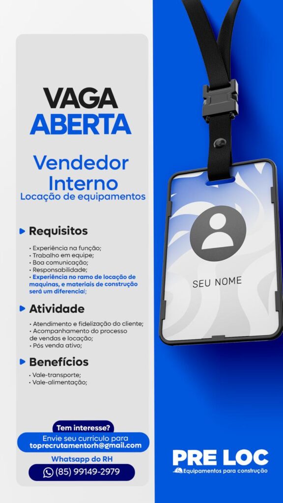 Vendedor Interno de Locação de Equipamentos