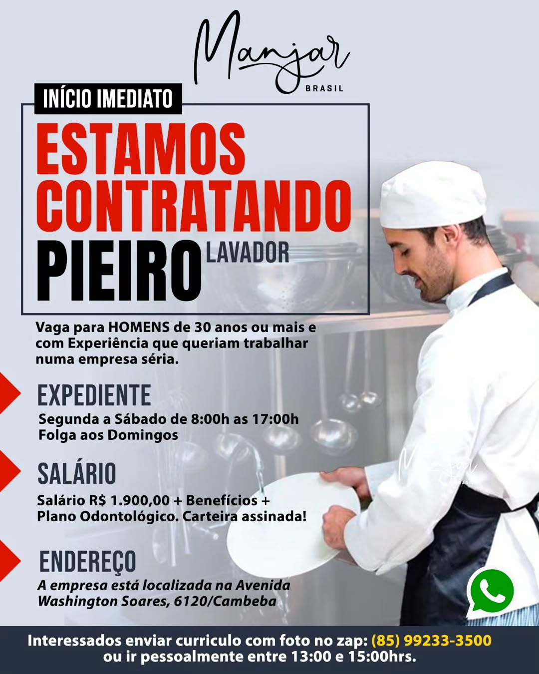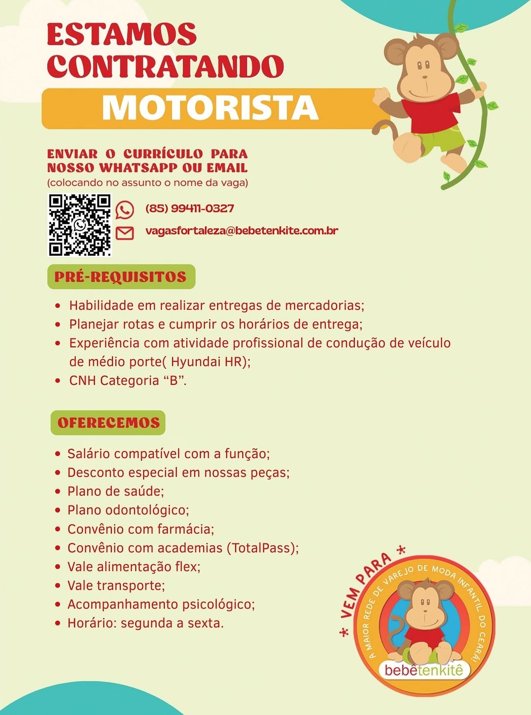 Vendedor(a) de Loja, Estágio em Pedagogia, Lavador de Pratos, Gerente, Motorista