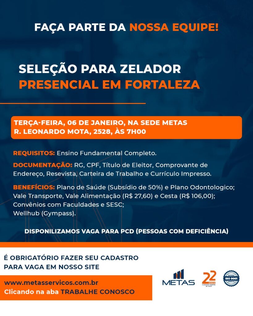 As vagas são divulgadas da mesma forma que recebemos. Não nos responsabilizamos pelas vagas, nem pelas informações fornecidas referente as mesmas, também não nos responsabilizamos pela idoneidade das empresas e instituições, apenas divulgamos as vagas que recebemos. Alertamos à buscar informações sobre as empresas que estão disponibilizando as vagas, através de contato por telefone ou e-mail divulgados nas mesmas, além de pesquisar na internet ou outros meios. Tome muito cuidado com locais (empresas ou instituições) que cobram taxas para garantir vagas ou para garantir uma colocação no mercado de trabalho. Esteja atento (a) a localização (endereço) da entrevista e do local de trabalho, se não conhecer ou achar que é um lugar isolado, vá com uma companhia ou não vá. Ter um emprego para garantir seu sustento e de sua família é importante, mas sua segurança e integridade também é, por isso, esteja atento. Se você é menor de idade vá acompanhado (a) de um (a) responsável.