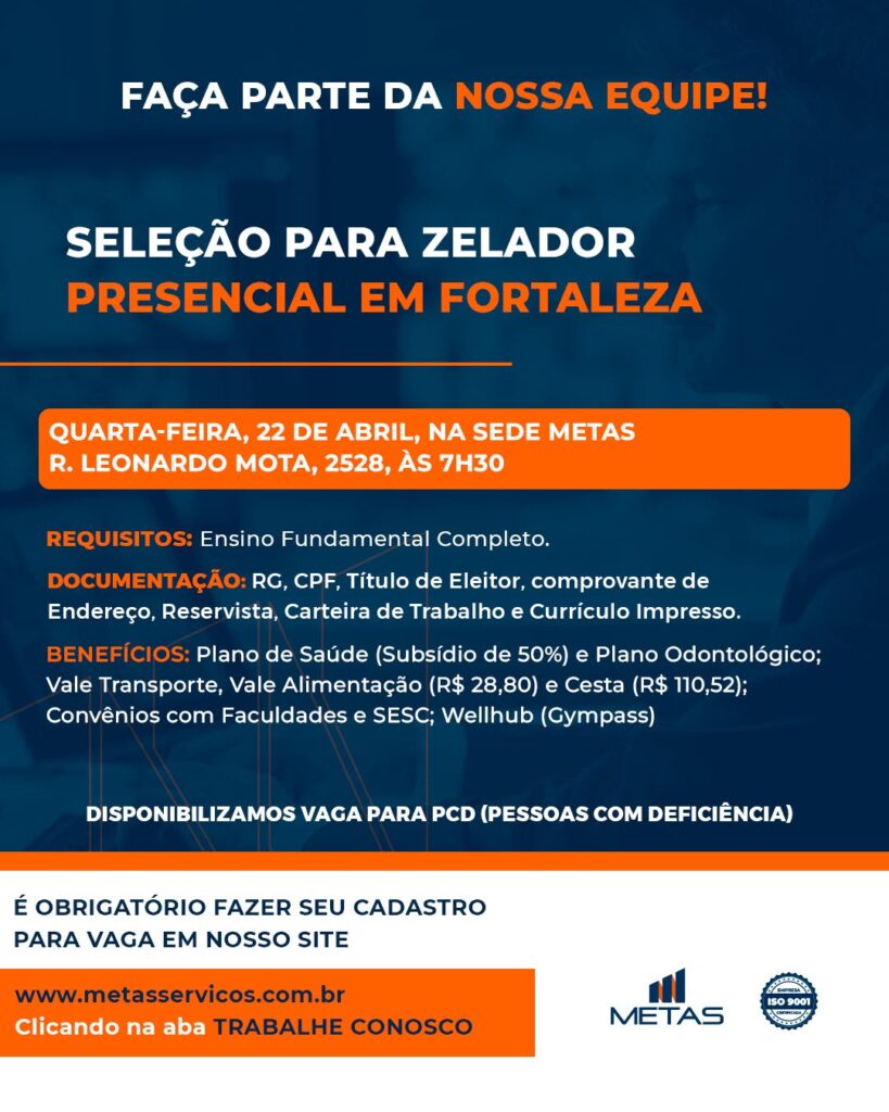 As vagas são divulgadas da mesma forma que recebemos. Não nos responsabilizamos pelas vagas, nem pelas informações fornecidas referente as mesmas, também não nos responsabilizamos pela idoneidade das empresas e instituições, apenas divulgamos as vagas que recebemos. Alertamos à buscar informações sobre as empresas que estão disponibilizando as vagas, através de contato por telefone ou e-mail divulgados nas mesmas, além de pesquisar na internet ou outros meios. Tome muito cuidado com locais (empresas ou instituições) que cobram taxas para garantir vagas ou para garantir uma colocação no mercado de trabalho. Esteja atento (a) a localização (endereço) da entrevista e do local de trabalho, se não conhecer ou achar que é um lugar isolado, vá com uma companhia ou não vá. Ter um emprego para garantir seu sustento e de sua família é importante, mas sua segurança e integridade também é, por isso, esteja atento. Se você é menor de idade vá acompanhado (a) de um (a) responsável.